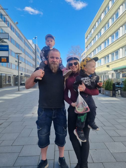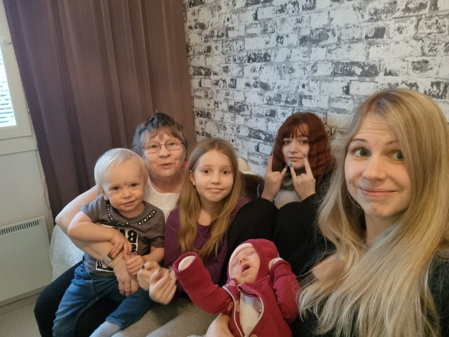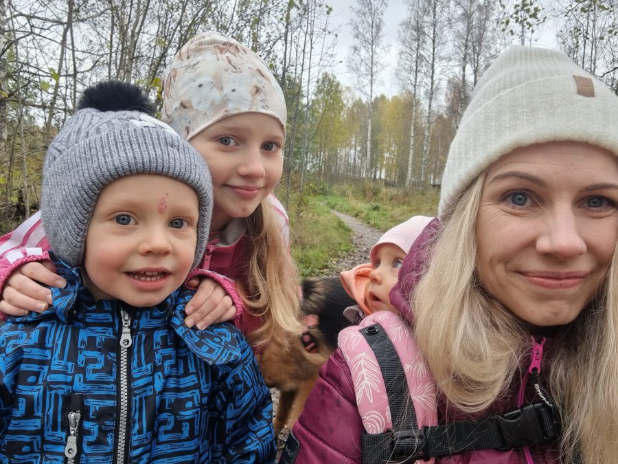 Mieheni tekee paljon töitä ympäri vuoden ja opiskelee ammattikorkeakoulussa työn ohella. Itse yritän viimeistellä väitöskirjaani työn ja perheen pyörityksessä. Perheessämme on kissa Usva ja myös kaksi isoa ja aktiivista saksanpaimenkoiraa (Selma ja Maisteri), jotka pitävät nekin meidät liikkeessä. Arki on siis vilkasta, mutta kenties työkokemus auttaa hallitsemaan arjen pyöritystä ja aikatauluja. Äitini Tarja on aktiivisesti elämässämme mukana ja on korvaamaton apu lasten kanssa.
